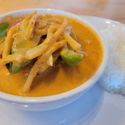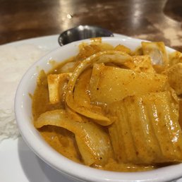 I was in the mood for big, bold flavors. I will get those flavors next time I go. I ordered medium spice (3+ out of 5), but it wasn't very spicy at all. Maybe it is due to the location near the college campus, but I have ordered medium spice at other Thai restaurants and the dish has made me sweat. That said, the Massaman Curry was delicious, especially after I added some chili oil. My son had Drunken Noodles and practically licked the plate clean. My other son had the Tom Yum Soup and loved it. I would recommend planning on appetizers or dessert as the portions are not huge. However, the price was appropriate. I usually have leftovers at Thai restaurants, but I ate every bite. In some ways, that is a good thing, but I love leftover curry and rice! The service was fast and friendly. We were there at the last hour they were open and we never felt rushed with our meal. I would definitely return to Cafe De' Bangkok.